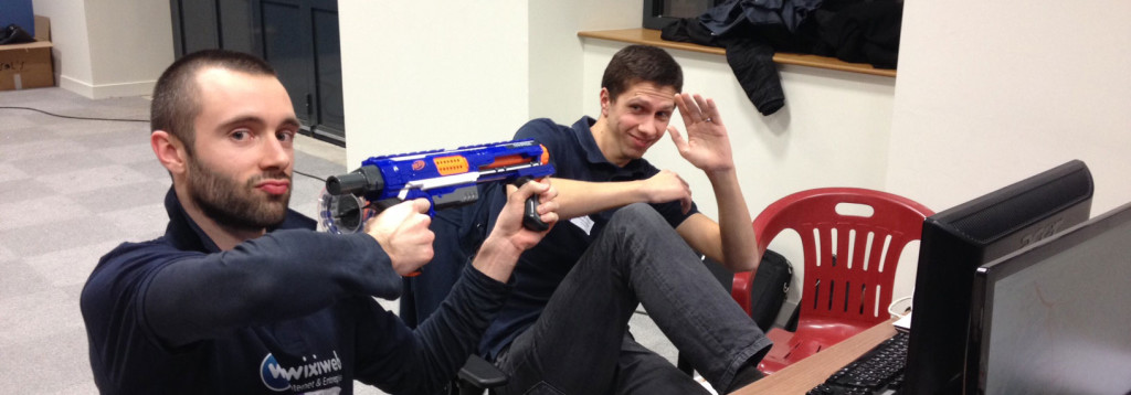 Nous formions nous même les équipes, il y avait donc des équipes d’étudiants, de professionnels et d’autres mixtes (et oui des stages étaient aussi à la clé). Personnellement j’étais dans une équipe mixte et devait coder sous la menace d’un NERF … 🙂